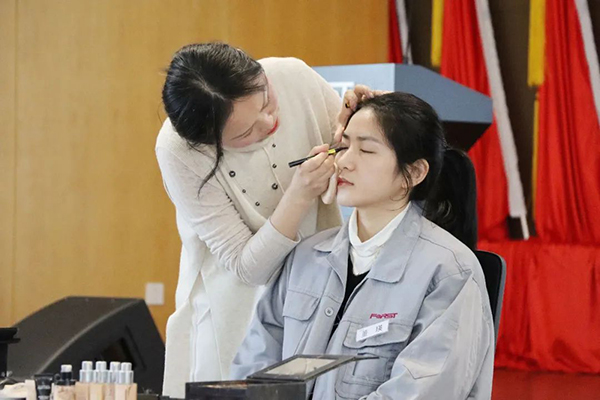 下午,女神节主题活动正式开启,由职业妆教学和参观临安博物馆两部分组成。首先,职业妆老师向大家介绍了化妆的流程、不同脸型的化妆方法等。接着,老师在活动现场挑选一位女职工当模特,一边讲解,一边精心打造她的专属妆容。期间,女职工们与老师积极互动,现场气氛十分热烈。最后,模特在老师的一双巧手下素颜换新姿,更添优雅活力。