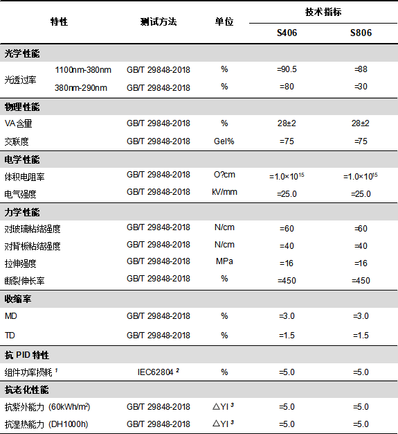 1)出色的抗酸化能力和电池保护能力,实现光伏组件长期可靠工作;